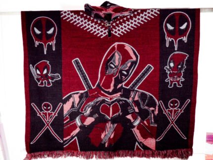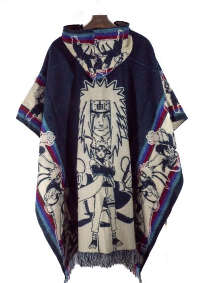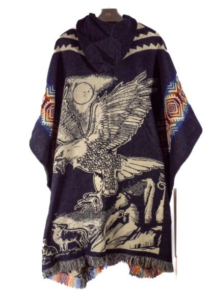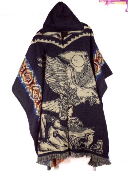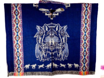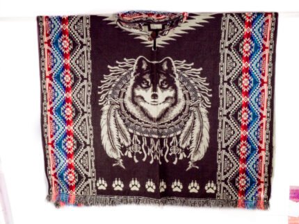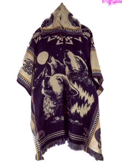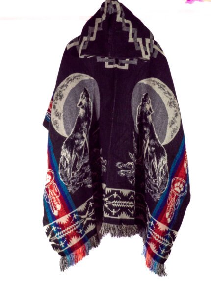 Poncho en Alpaga Motif Quatre Loup et Lune