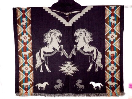 Poncho en Alpaga Motif Deux Chevaux Au Galpes