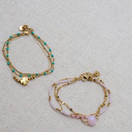 Bracelets Mulrti-Rangs Trefle Pierre Rose