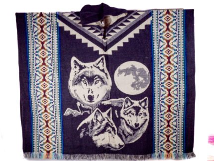 Poncho Alpaga en Motif Loups et Lune