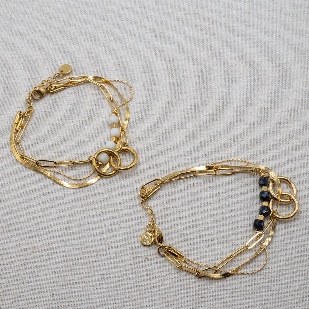 Bracelets Mulrti-Rangs Cercle Crystal Noir et Blanc