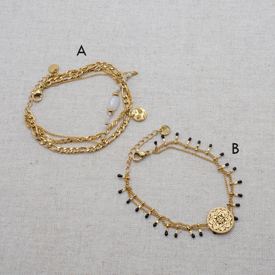 Bracelets Mulrti-Rangs Chaînes et Perles Résine