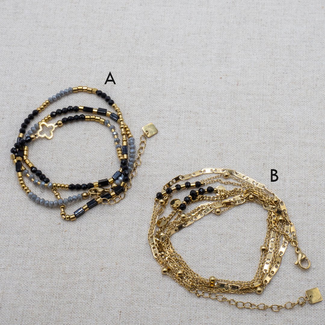 Bracelets Mulrti-Rangs Trefle faceted Onix