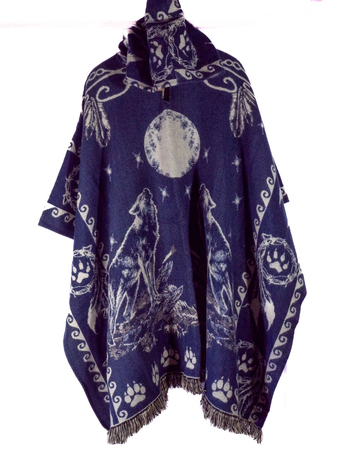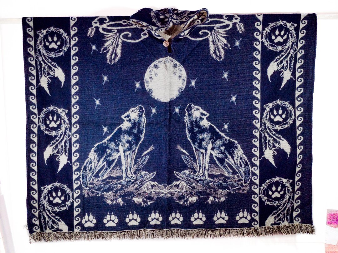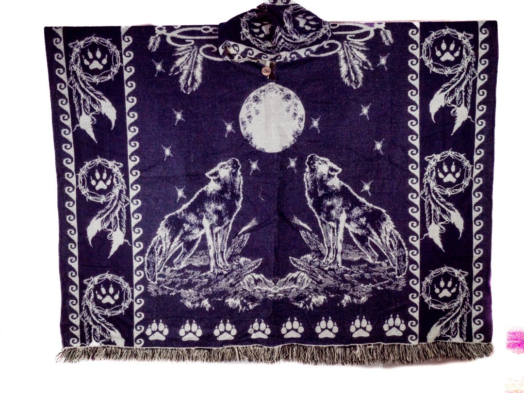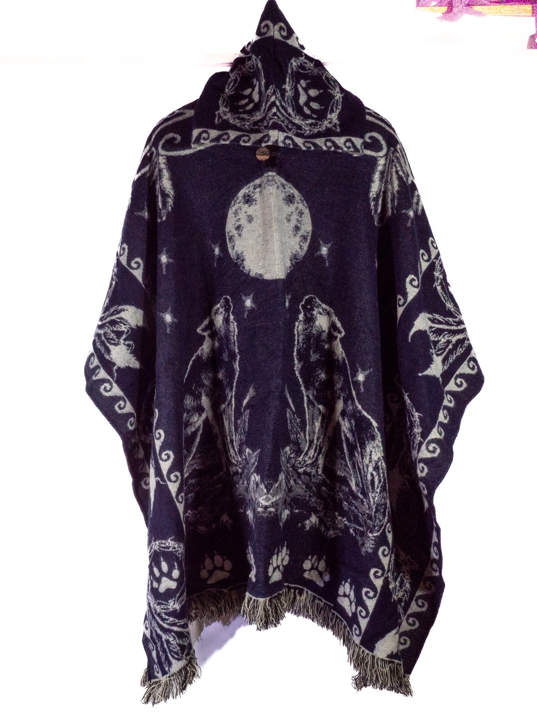 Poncho Alpaga en motif Loup Plume Lune