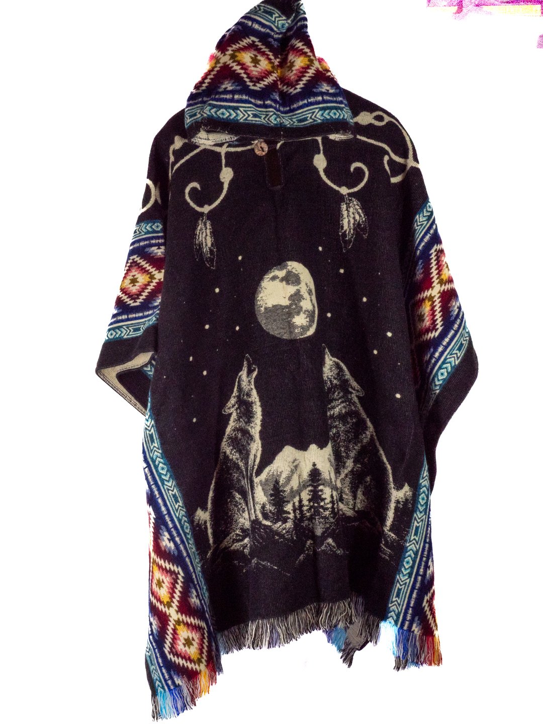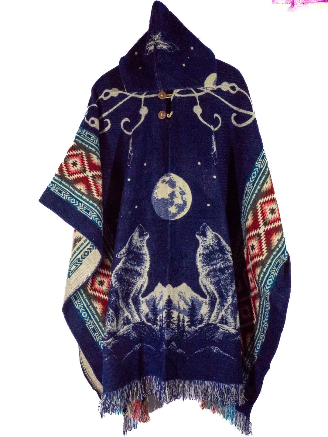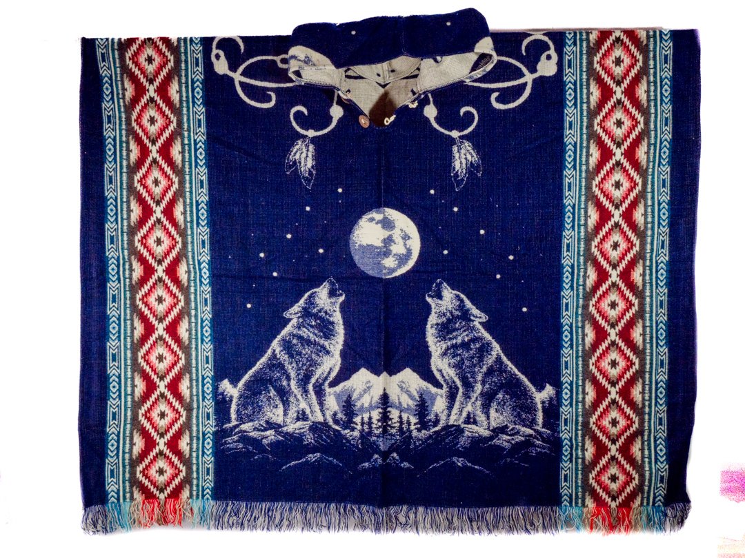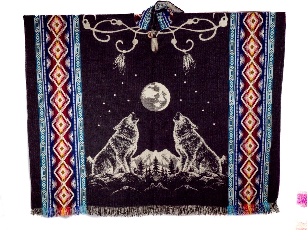 Poncho en Alpaga Geometrique Loup Lune